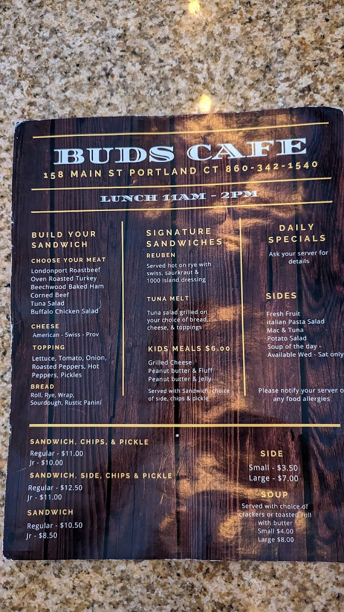 Bud's Cafe Menu